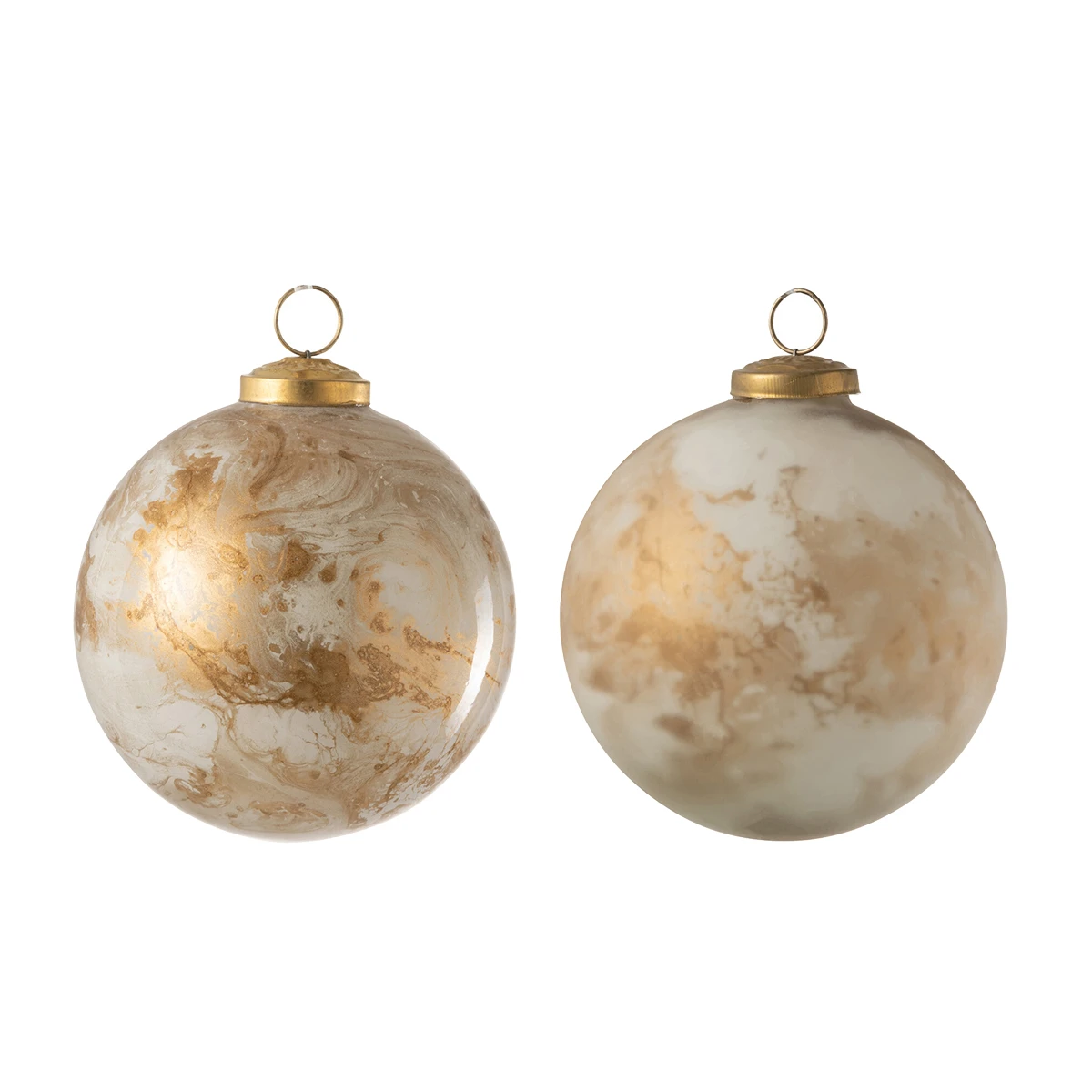 2 Boules De Noël – Marbre Doré – 10 Cm