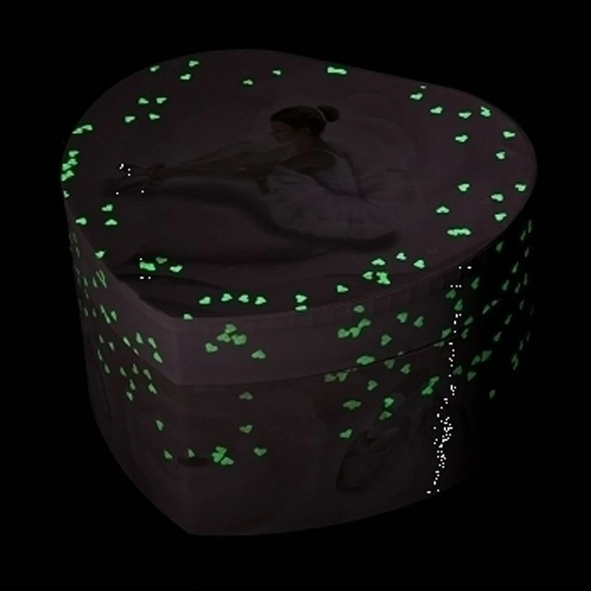 Boîte à bijoux musicale Phosphorescente coeur Ballerine rose