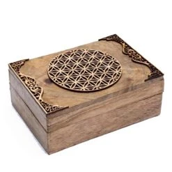 Boite pour tarots Fleur de Vie en bois de manguier 18 cm