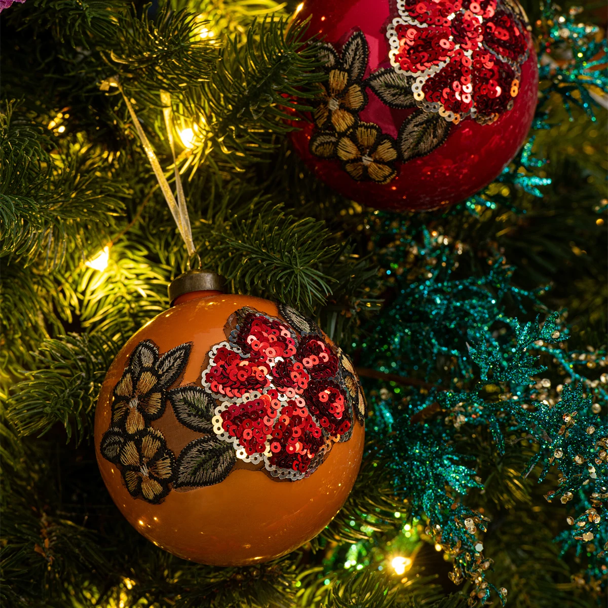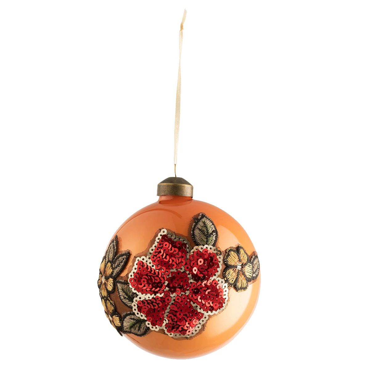 Boule De NoĂ«l – Broderie Fleur En Sequins – 10 Cm