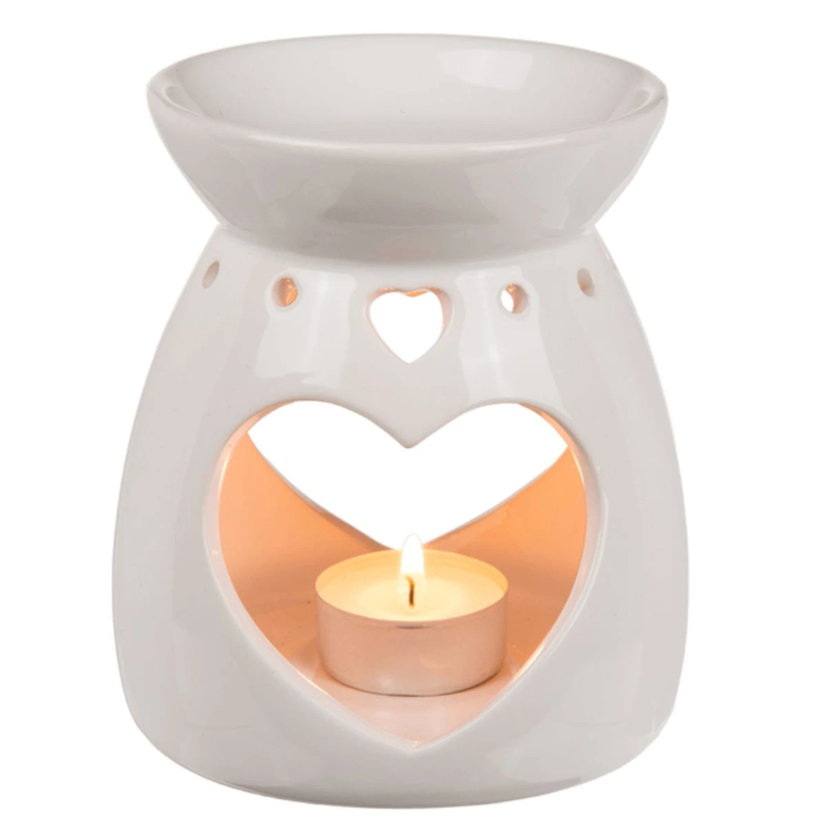 Brûleur aromatique Coeurs en céramique blanche 13 cm