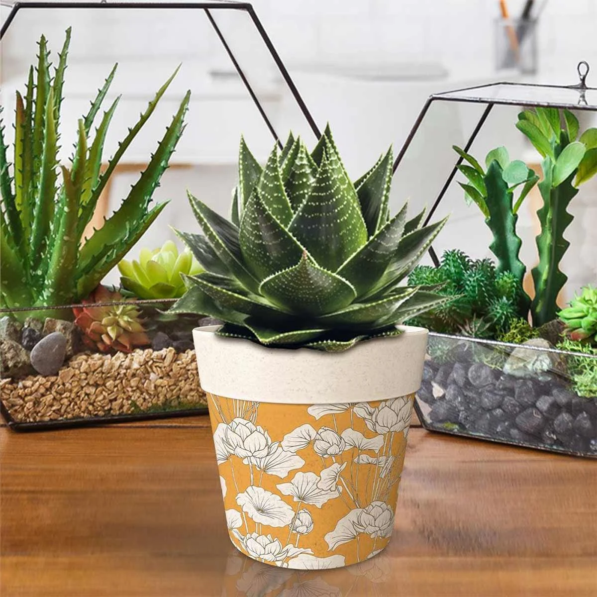 Ce cache-pot en fibre de bambou joliment dĂ©corĂ© mettra vos plantes d’intĂ©rieur en valeur.Â