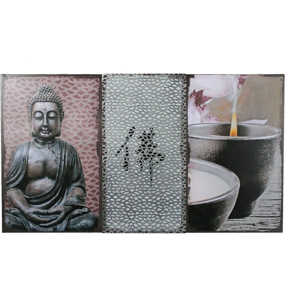 Cadre Zen Bouddha avec application en métal 90 x 50 cm