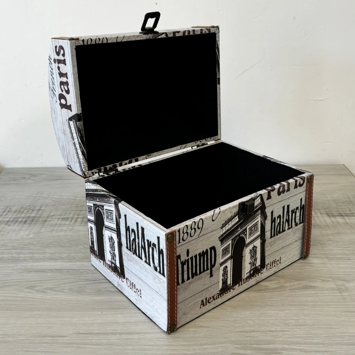 Ce coffre rĂ©tro est conçu pour ceux qui apprĂ©cient le style vintage et la beautĂ© parisienne. Le design met en avant le cĂ©lèbre Arc de Triomphe, ajoutant une note de romantisme et d’histoire Ă votre dĂ©coration.