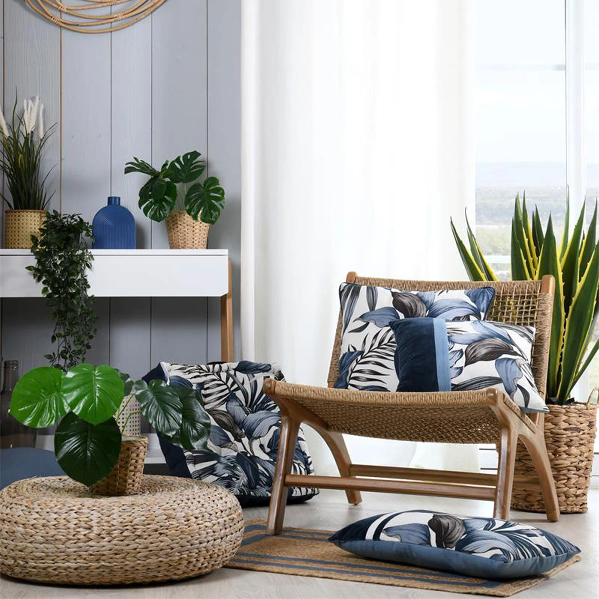 Vous ne pourrez plus vous passer de ce très beau coussin de sol en coton et son feuillage exotique foisonnant !