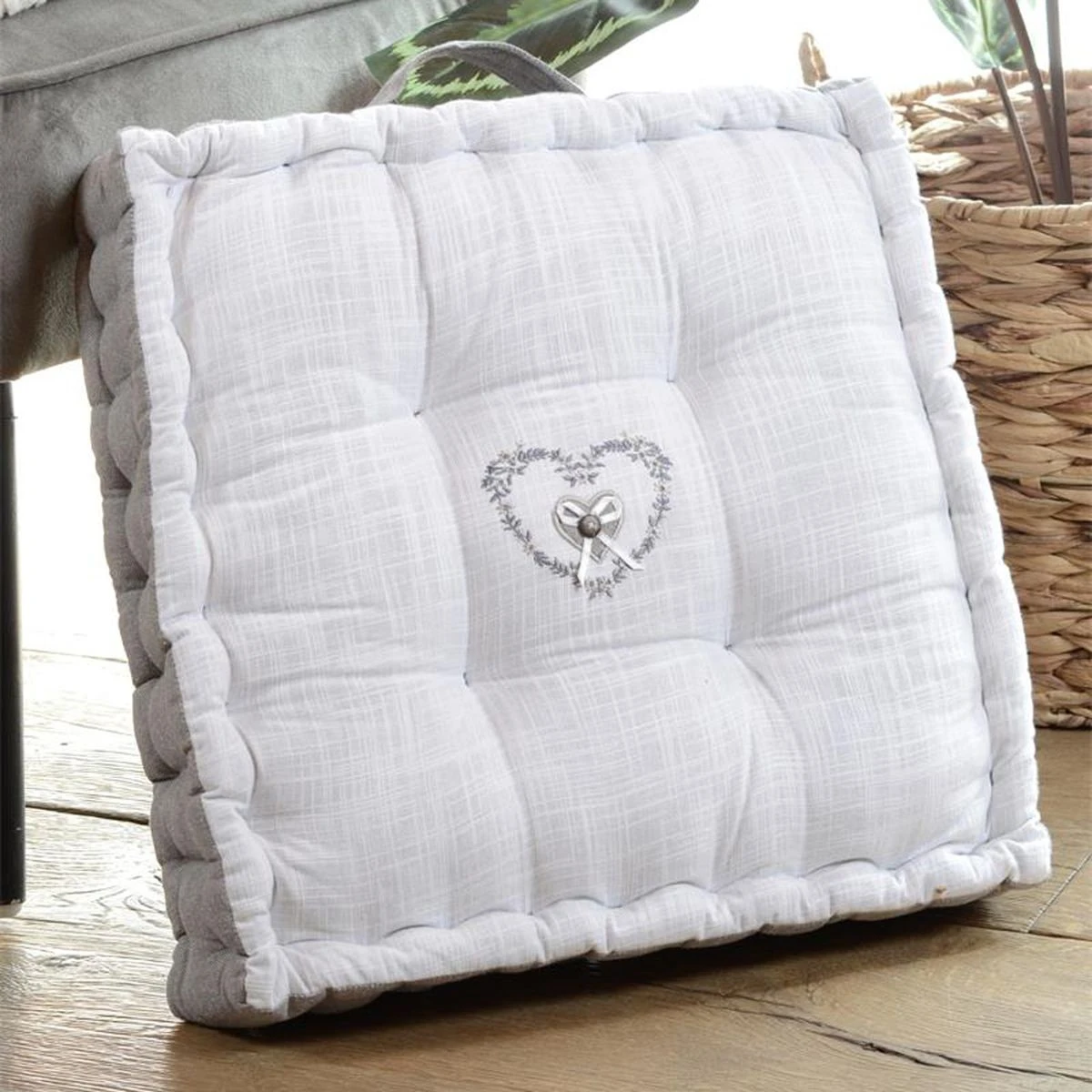 Élégant et plein de charme, ce coussin de sol en coton apportera une touche campage-chic à votre intérieur.