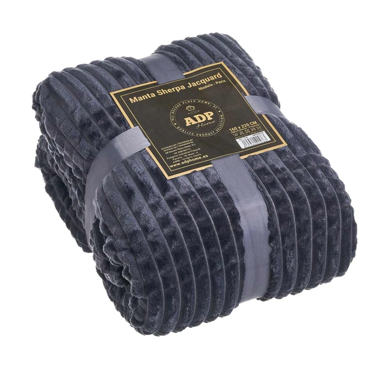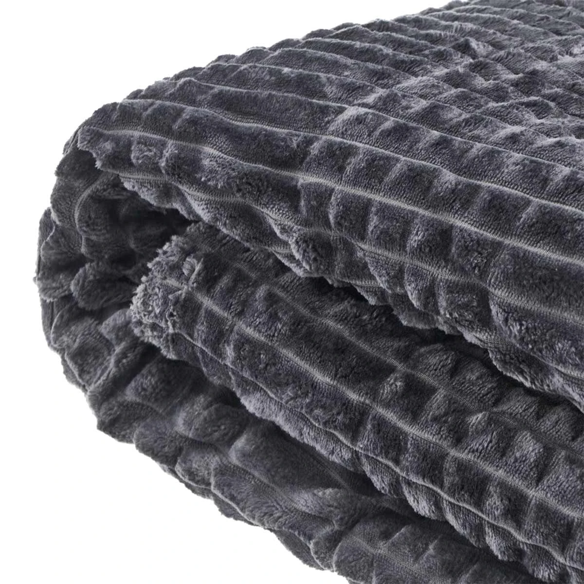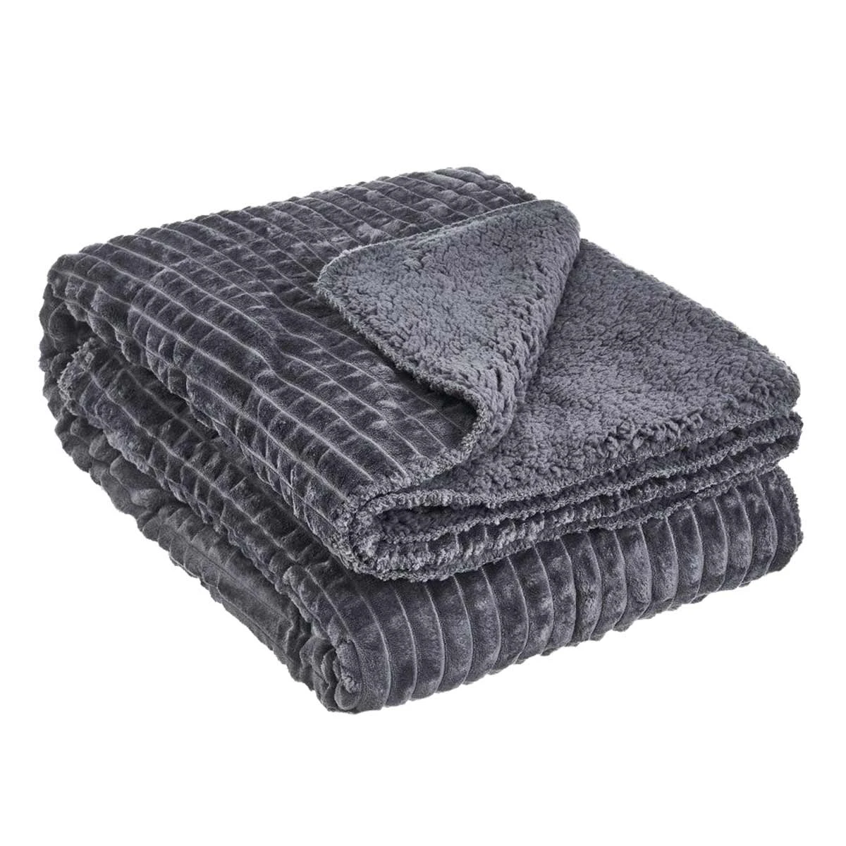 Couvre Lit en velours côtelé sherpa gris – 220 x 160 cm