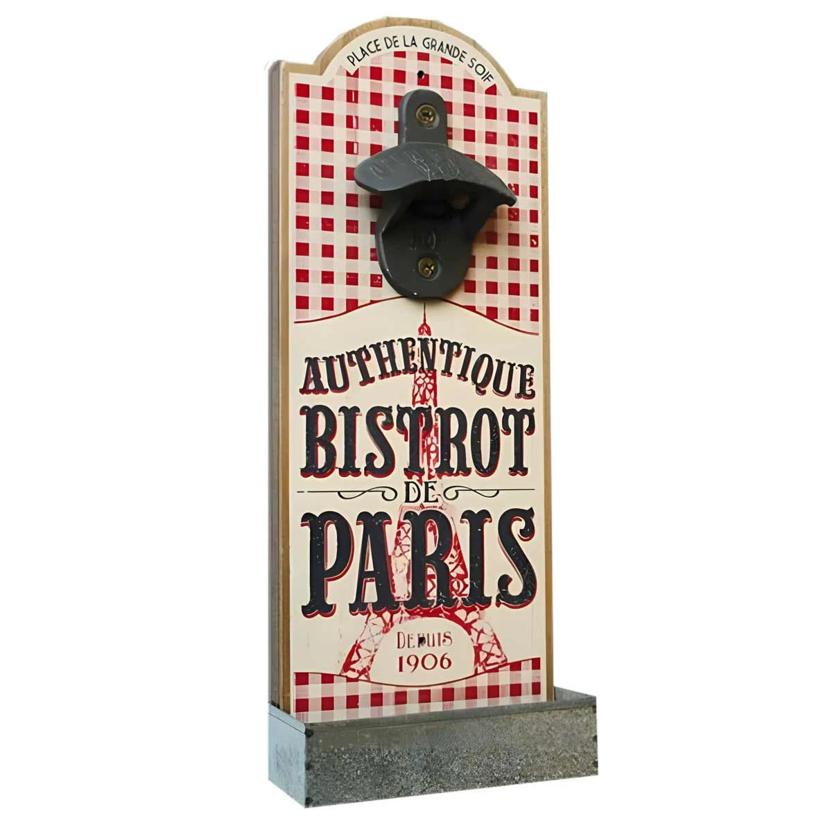 Le design évoque les charmants bistrots parisiens, apportant une ambiance conviviale et élégante à votre espace. Facile à suspendre, ce décapsuleur devient un élément décoratif pratique et esthétique. Il est idéal pour ouvrir vos bouteilles de manière pratique tout en ajoutant une note de caractère à votre décoration.