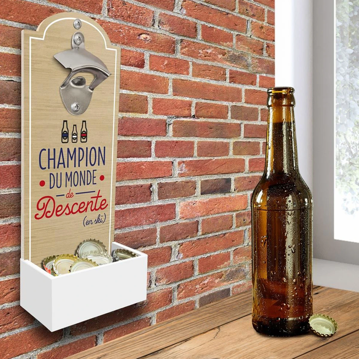DĂ©capsuleur mural en Bois – Champion du Monde de Descente