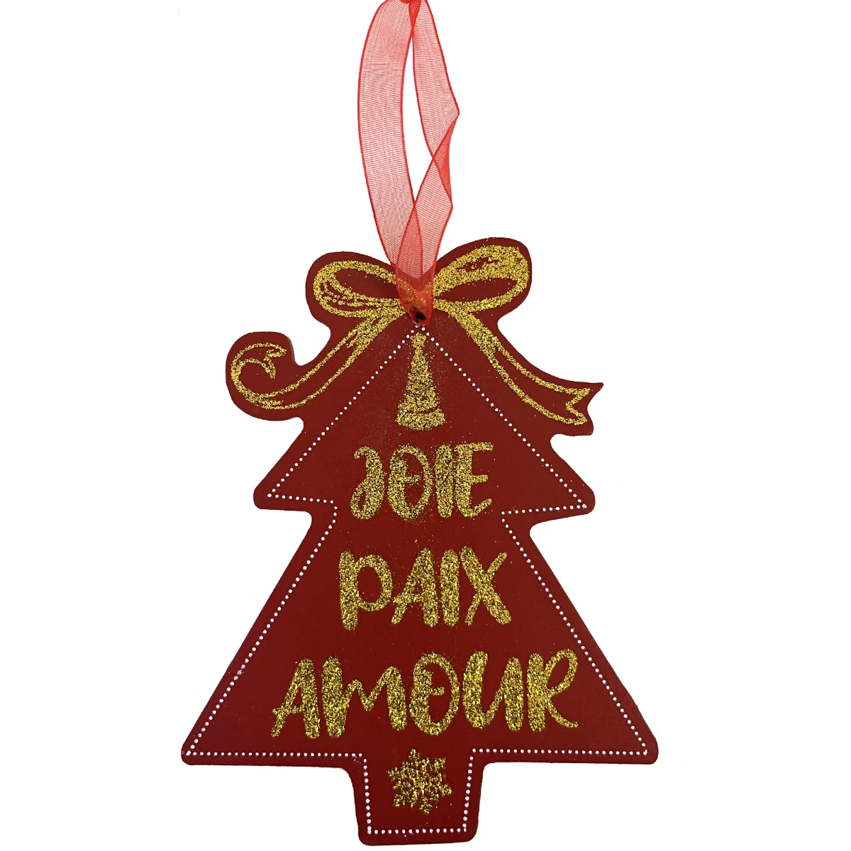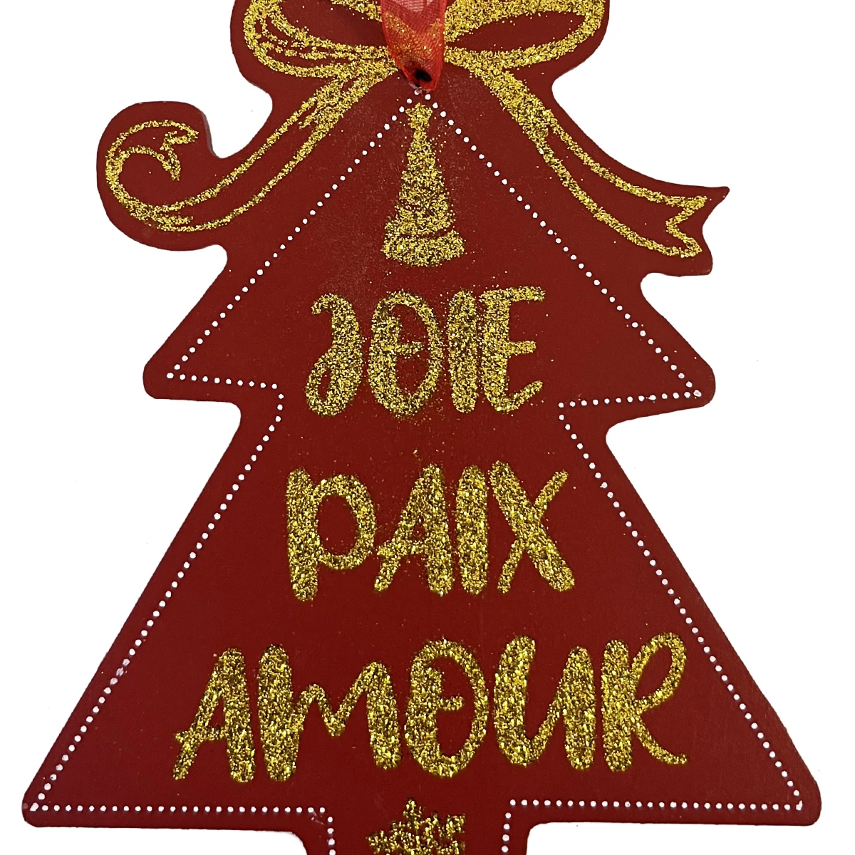 Décoration de sapin en bois pailleté – Joie Paix Amour