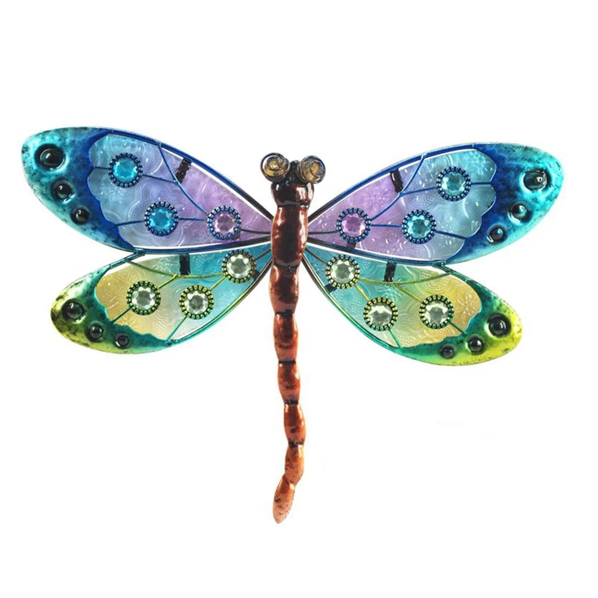 Décoration Murale Libellule Multicolore En Métal Et Verre 17 Cm