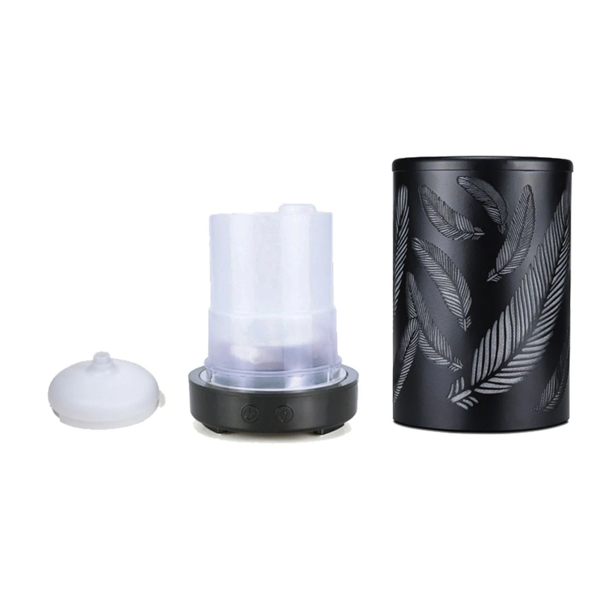Diffuseur d’arôme ultrasonique high-tech d’huiles essentielles. Avec éclairage LED intégré en 7 couleurs, qui peut être verrouillé sur la couleur préférée. Et un bouton pour une diffusion de bruine constante ou intermittente.