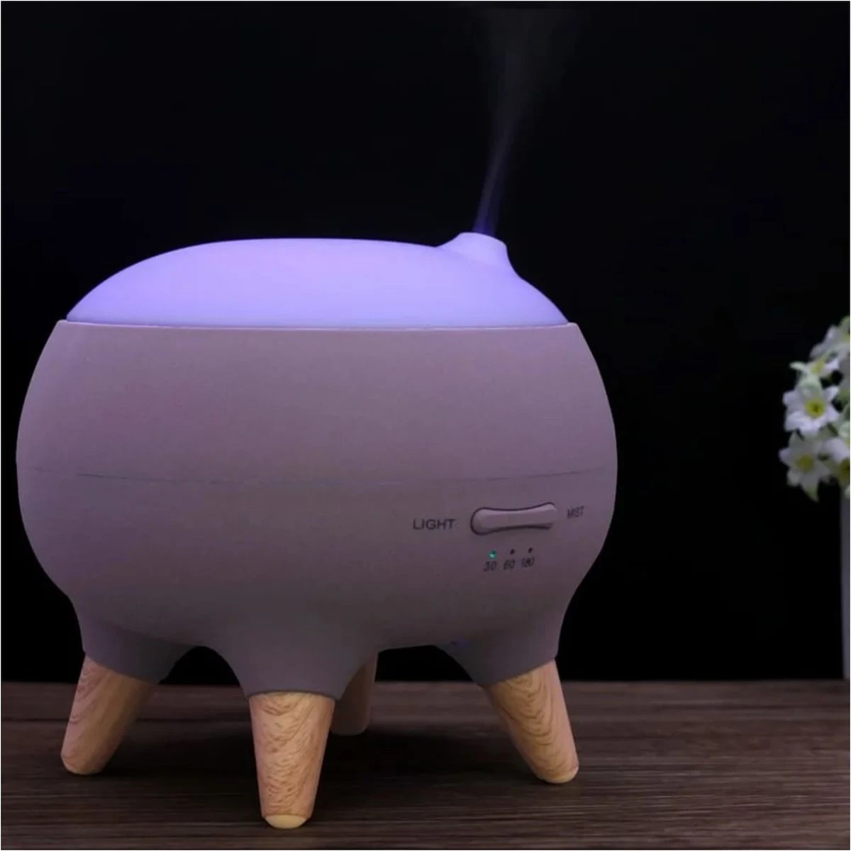 Ce diffuseur d’huiles essentielles contemporain pouvant facilement s’intégrer dans votre intérieur avec sa ligne harmonieuse, l’aspect bois cosy de ses pieds et son style scandinave.