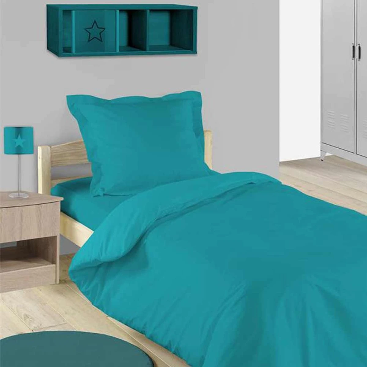 Drap housse pour lit une place 90 x 190 cm – Bleu Canard