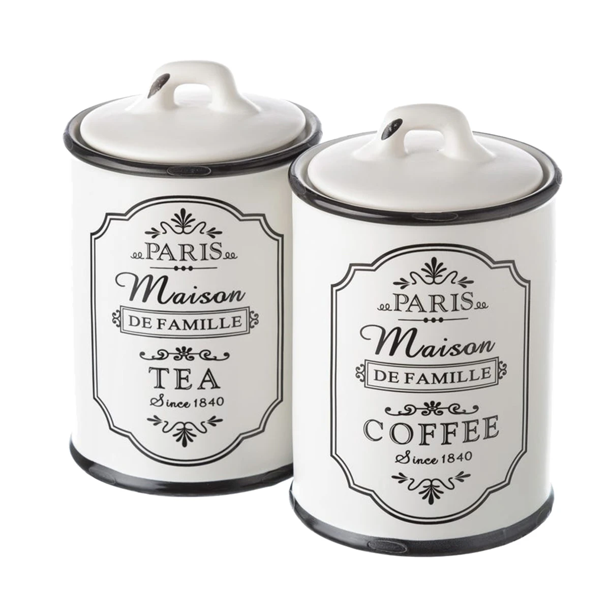 Ensemble De 2 Bocaux Thé Et Café Rétro En Céramique