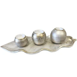 Conçue pour accueillir trois bougies chauffe-plat (non incluses), cette pièce polyvalente crée une ambiance chaleureuse et apaisante, parfaite pour des moments de détente ou des réceptions élégantes.