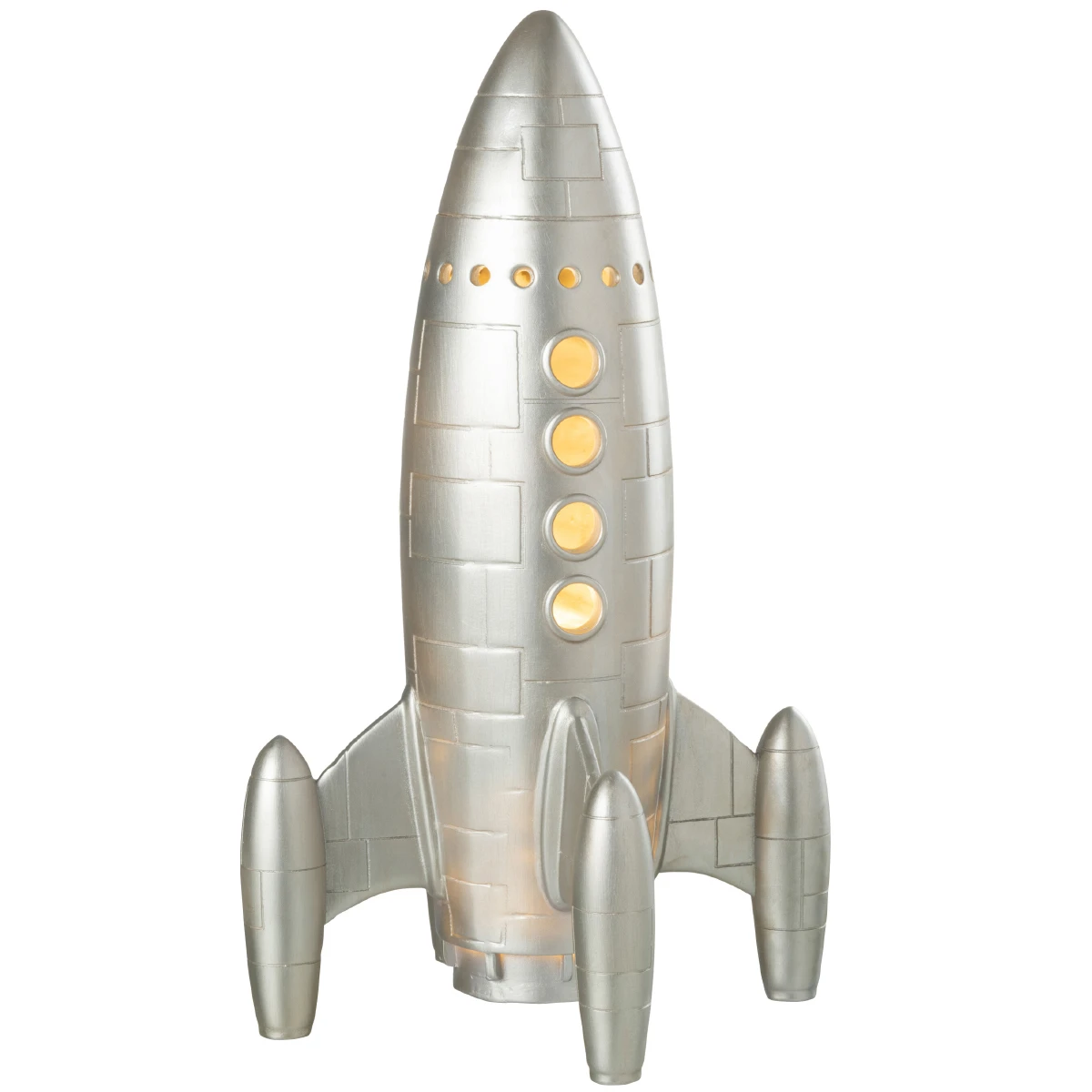 Grande Lampe Fusée Argent Patiné 43 Cm