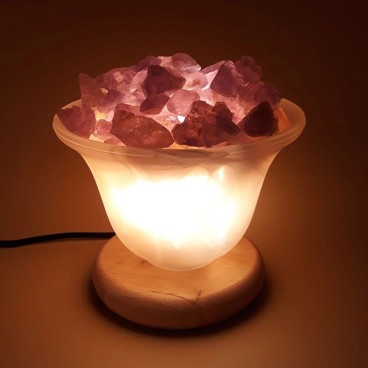 Lampe à cristaux d’améthyste et sel 19 cm