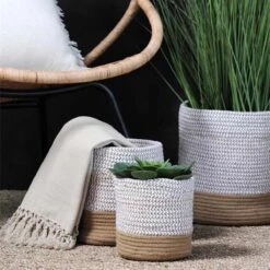 Lot 3 Paniers ou Cache-pots Vanua Naturel et Blanc