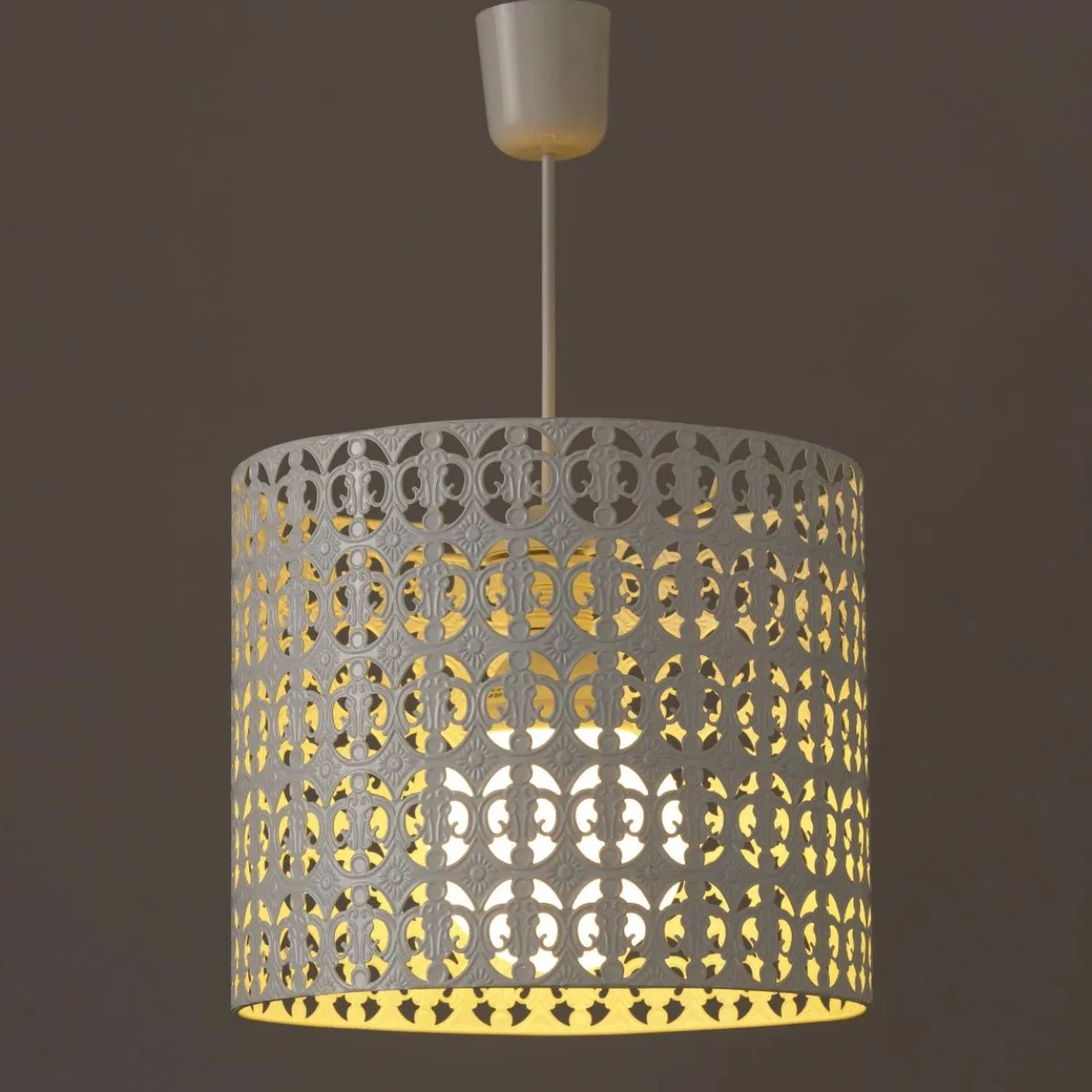 Lustre Motif Ajouré En Métal Blanc 25 X 29 Cm