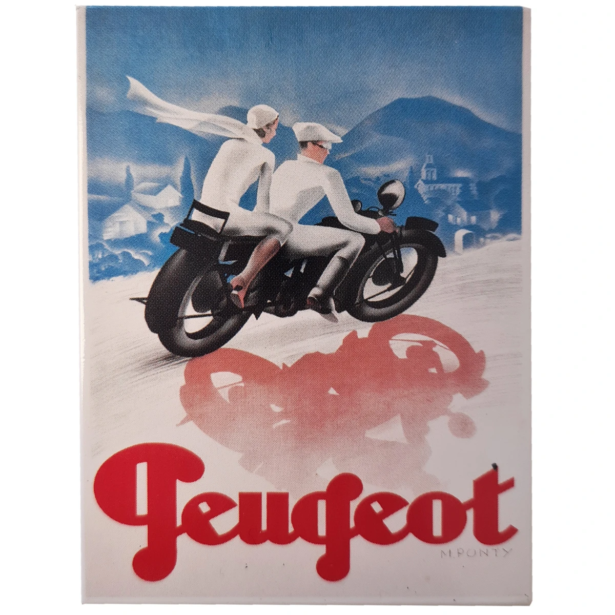 Sous licence officielle Peugeot, ce magnet est fabriquĂ© en mĂ©tal, capturant parfaitement le design rĂ©tro caractĂ©ristique des motos Peugeot. Il Ă©voque une Ă©poque rĂ©volue de sophistication et d’Ă©lĂ©gance mĂ©canique, idĂ©ale pour les passionnĂ©s d’automobiles et les collectionneurs.