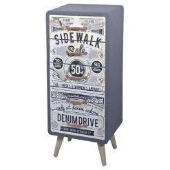 Ce meuble Chevet RĂ©tro en Bois se compose de 5 tiroirs avec des poignĂ©es en mĂ©tal aspect laiton.Â