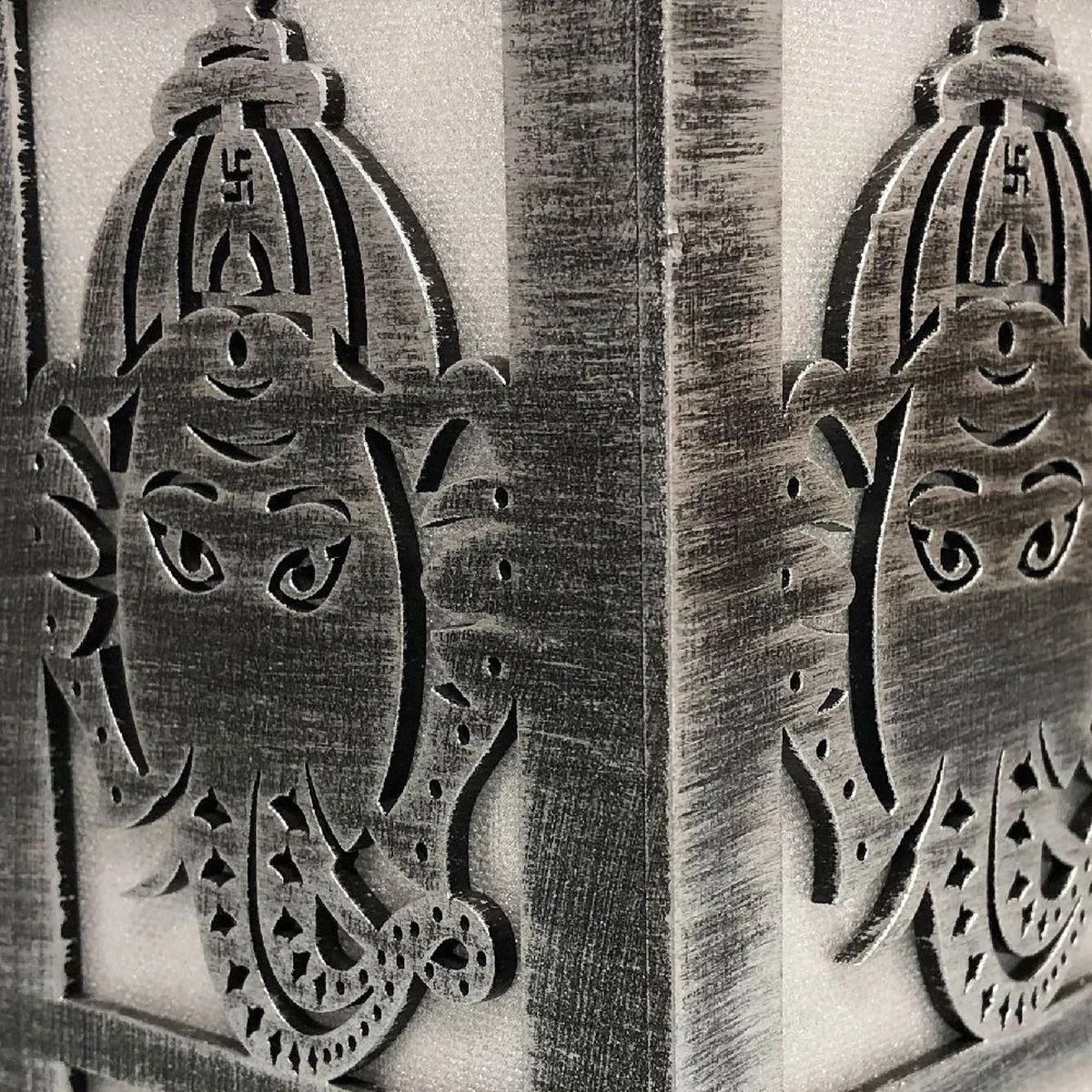 Photophore Dieu Ganesh pour Bougie Votive en bois argenté