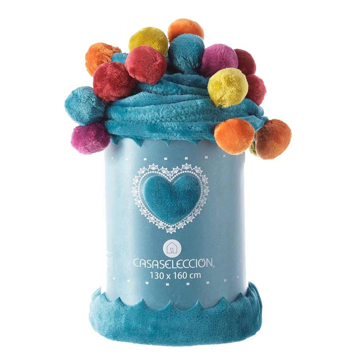 Plaid Arc en ciel Ă pompons Bleu 130 x 160 cm