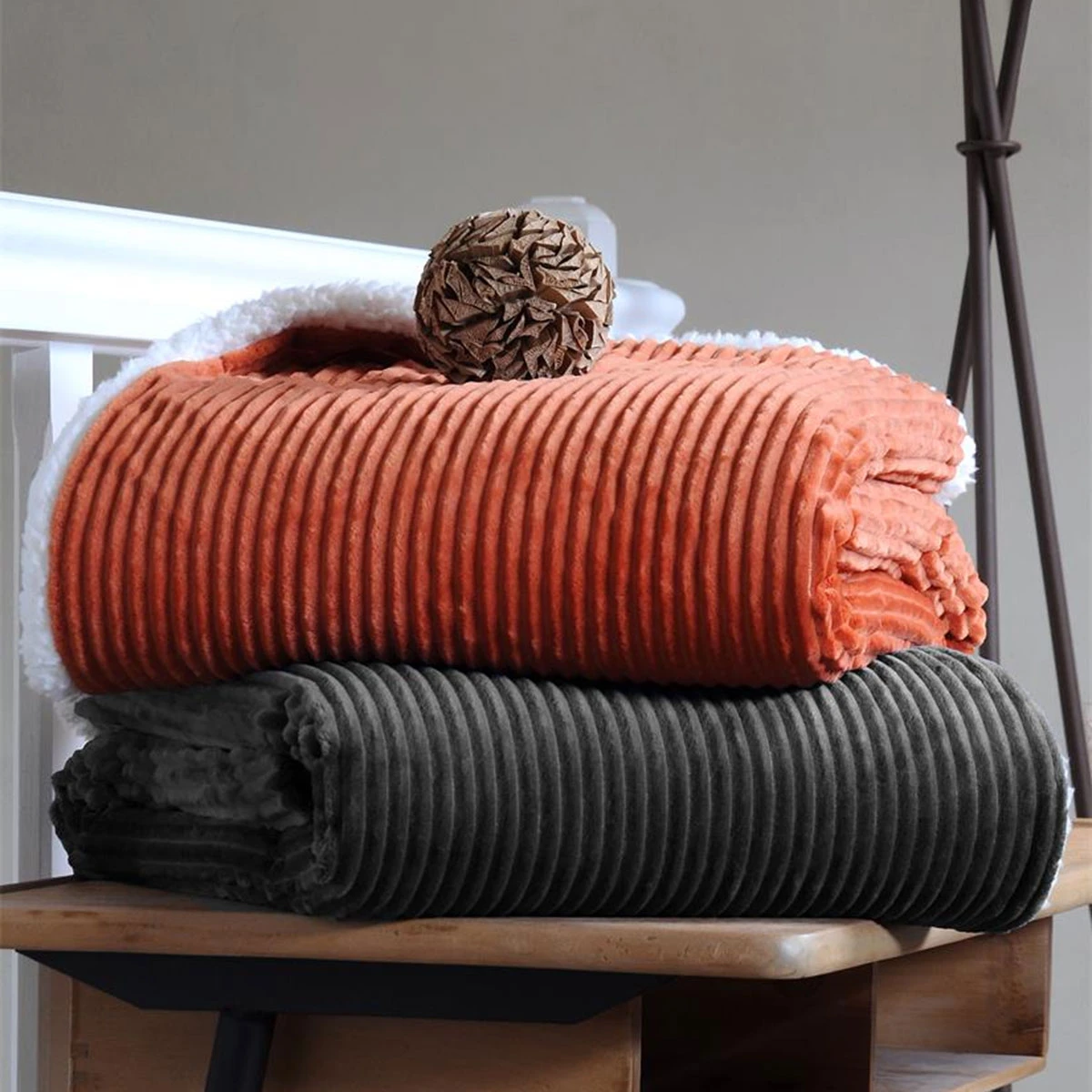 Plaid Ernest En Velours Cotelé Gris 130 X 150 Cm