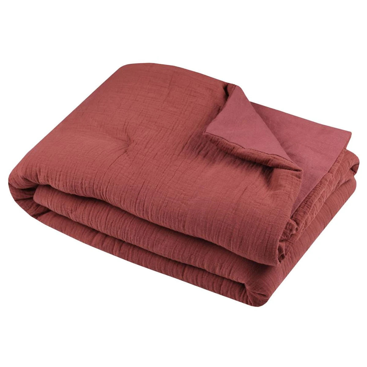 Plaid et jeté de canapé Coline en double gaze de coton 125 x 150 cm – Terracotta