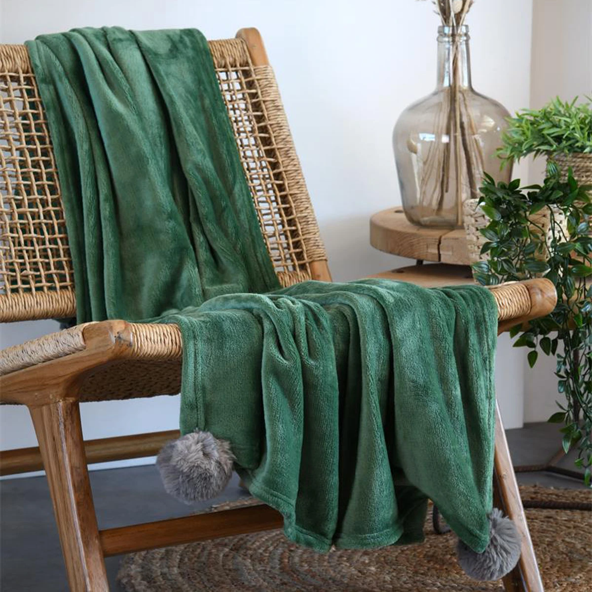 Plaid Mellow Ă pompons vert cactus 130 x 160 cm