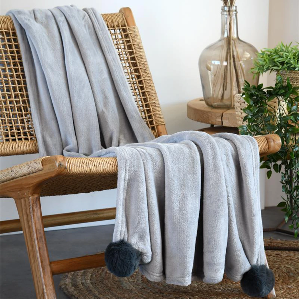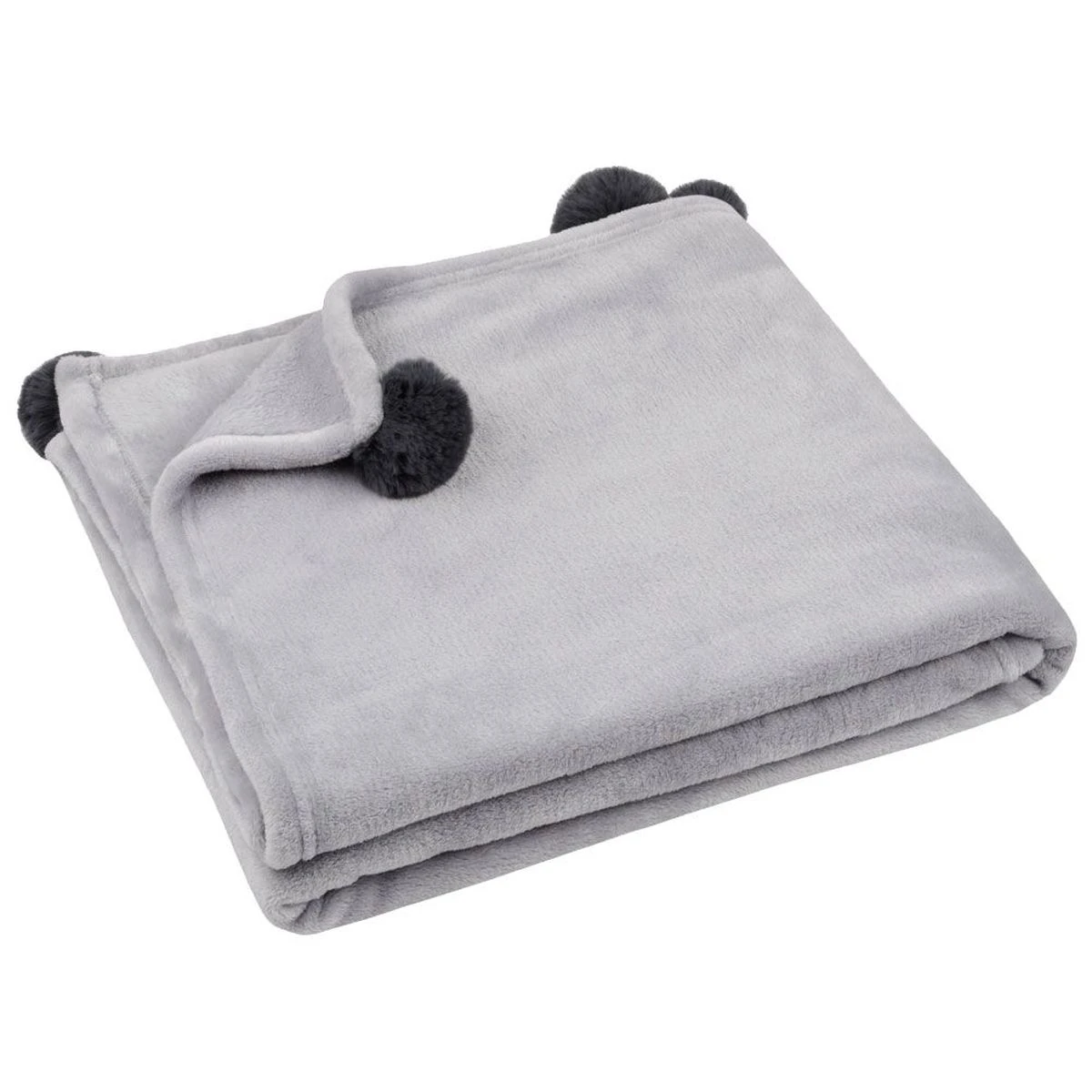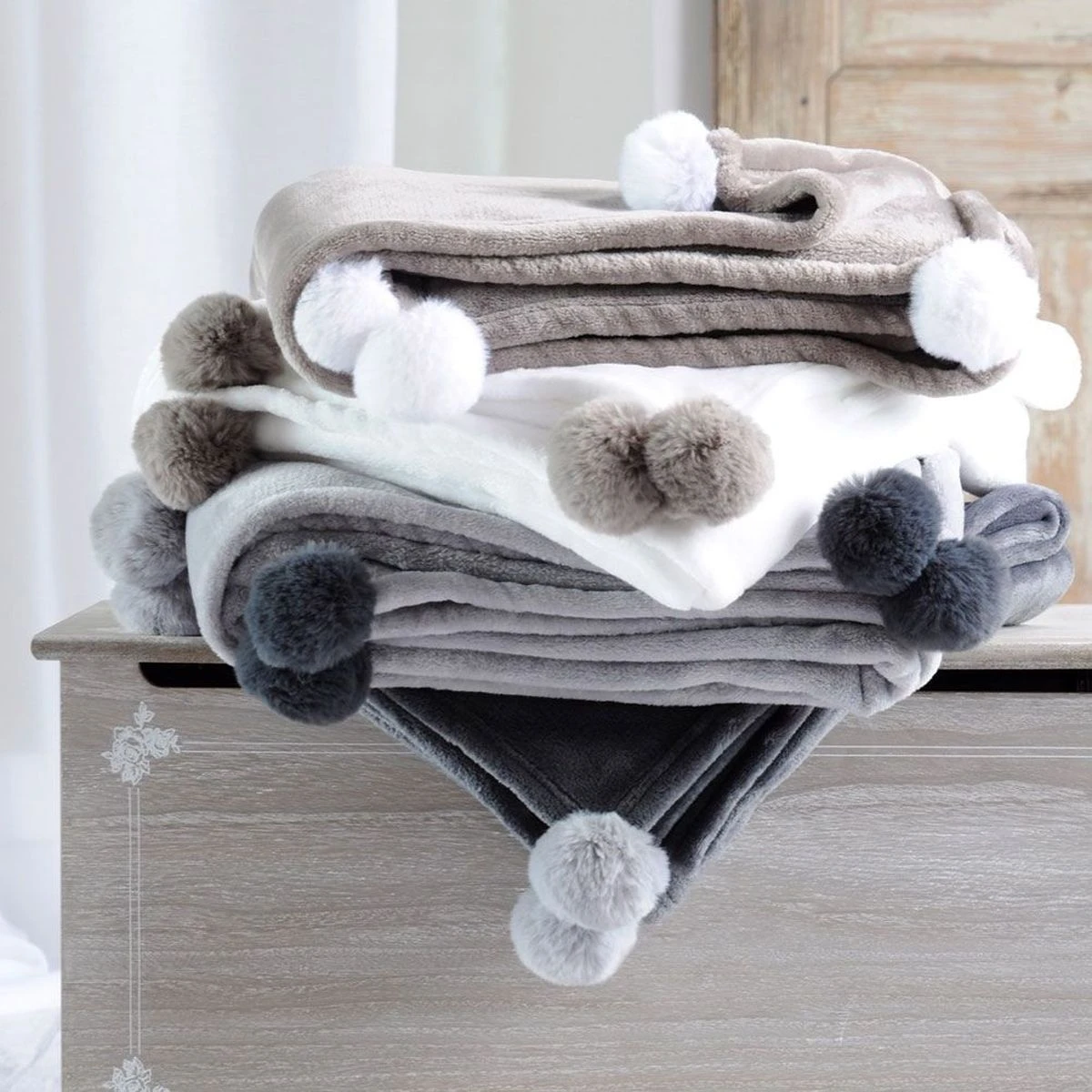 Plaid Mellow Ă pompons Gris perle 130 x 160 cm
