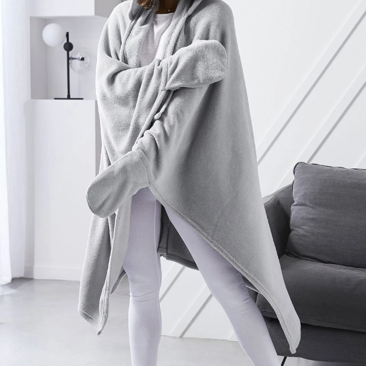 Ce plaid ultra doux avec une capuche enveloppante et des moufles intégrées vous accompagnera lors de vos soirées cocooning.