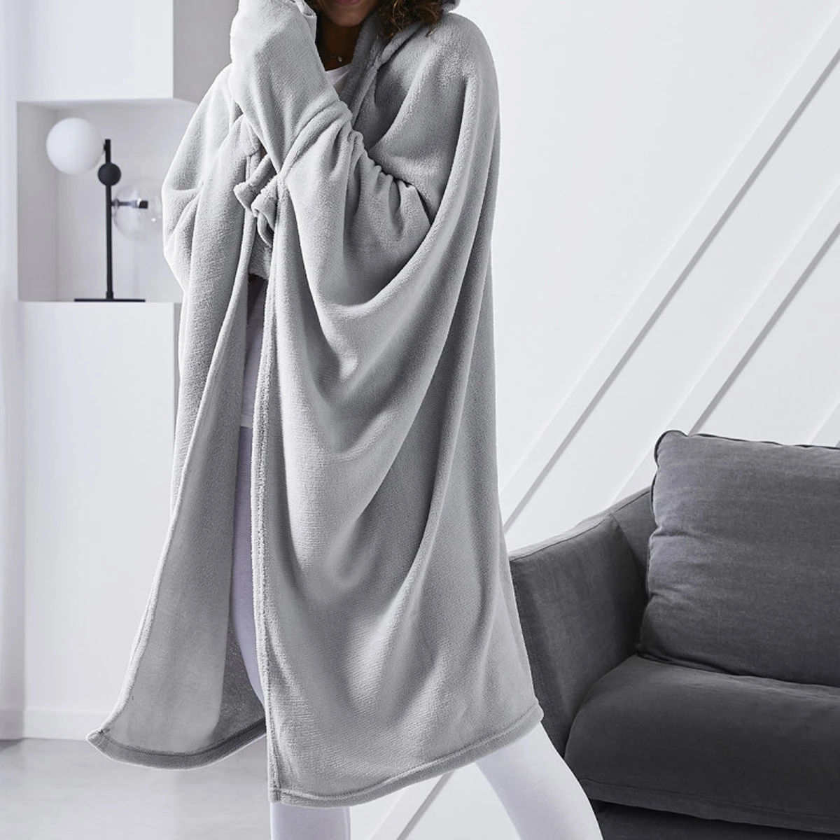 Plaid polaire Ă capuche couleur 115 x 165 cm – Acier