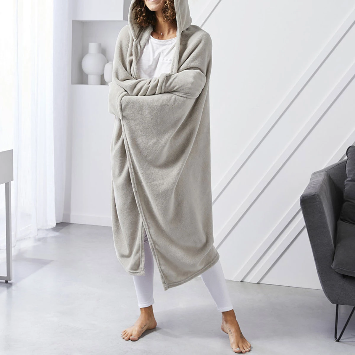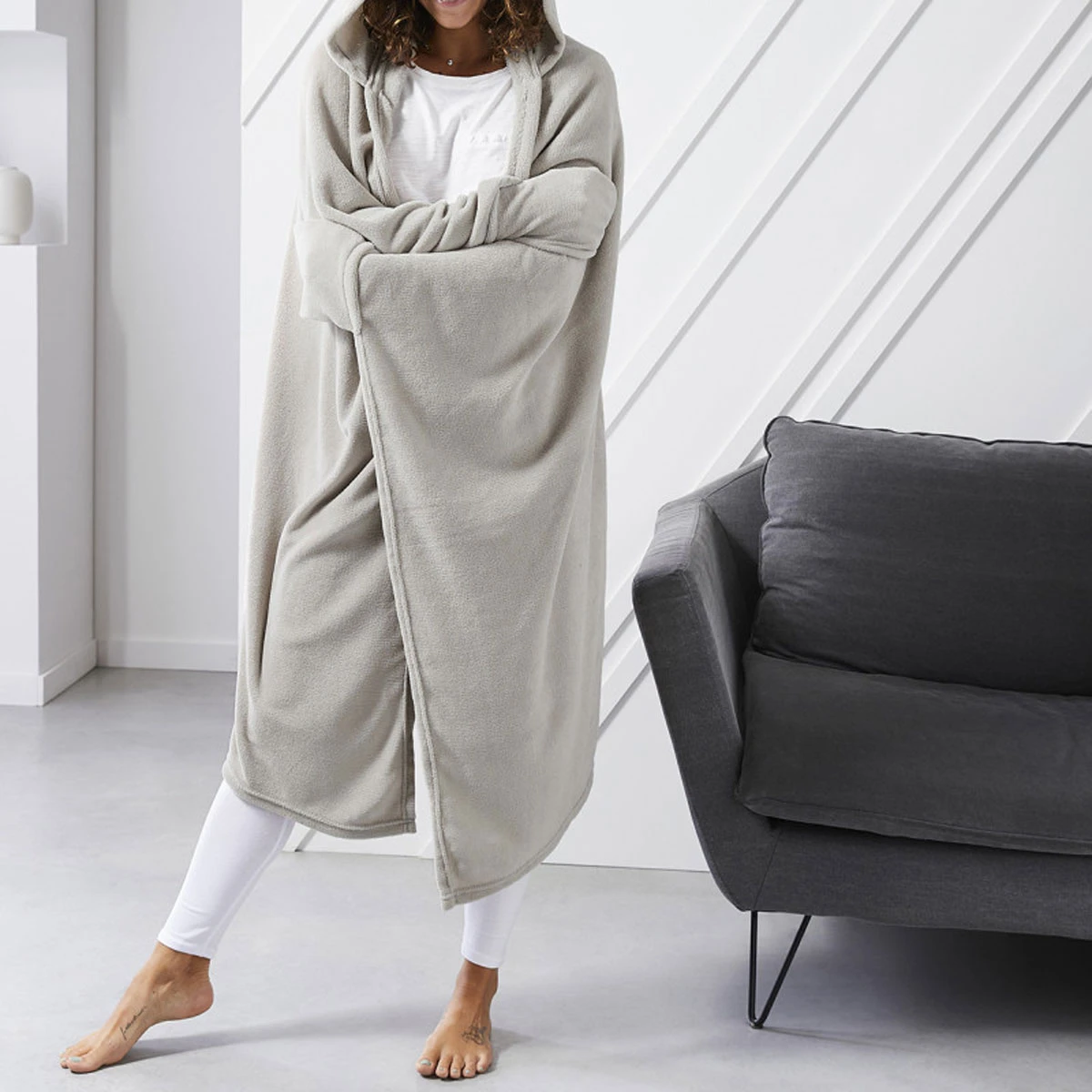 Ce plaid ultra doux avec une capuche enveloppante et des moufles intégrées vous accompagnera lors de vos soirées cocooning.