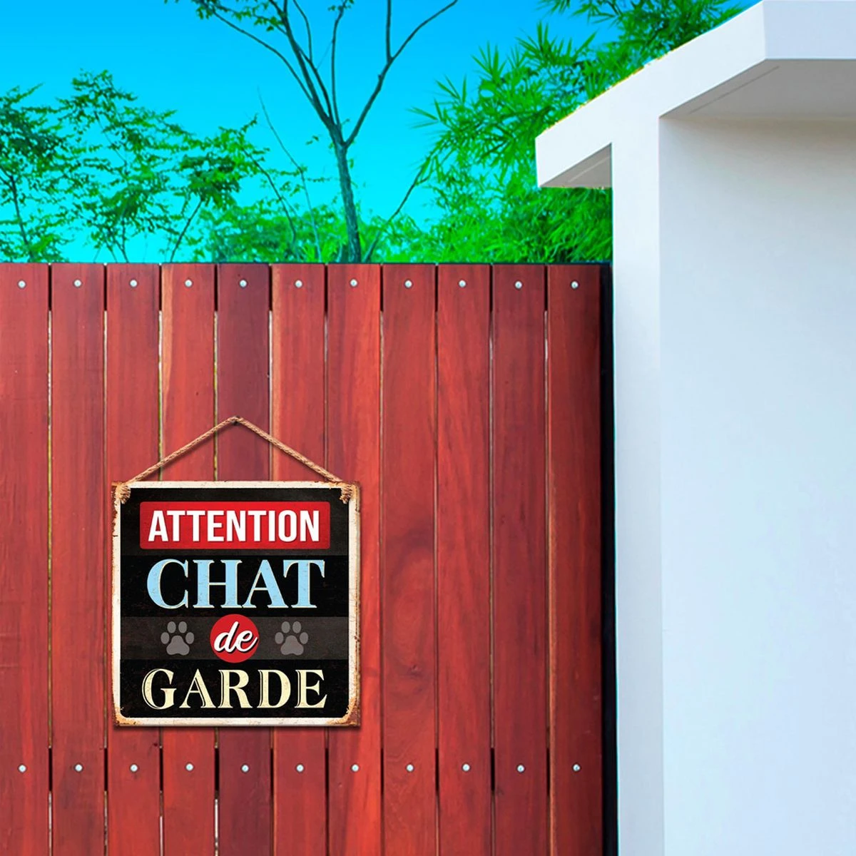Plaque DĂ©corative – Attention Chat de Garde – 20 cm