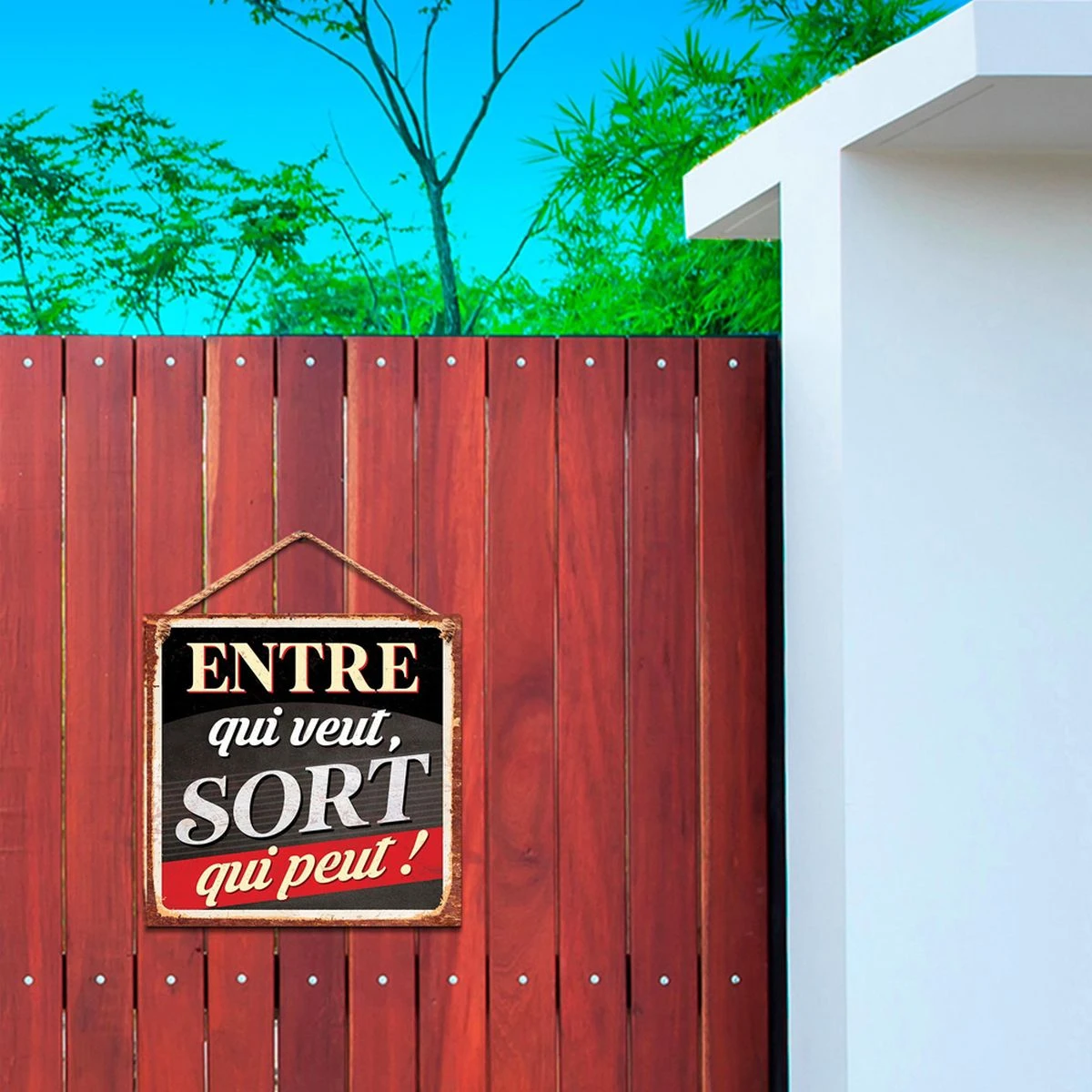 Ajoutez une touche d’humour et de caractère Ă votre espace avec cette plaque dĂ©corative mĂ©tallique « Entre qui veut, Sort qui peut ! » de 20 cm.