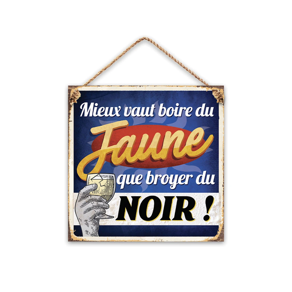 Plaque Décorative Mieux vaut boire du jaune que broyer du noir à suspendre 20 cm