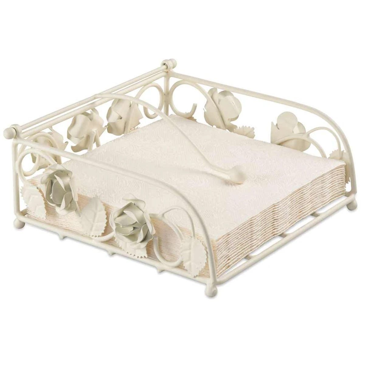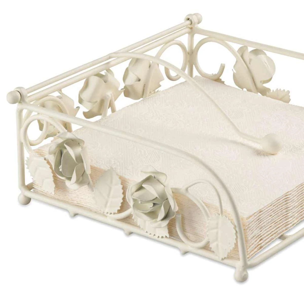 Porte serviettes Roses en métal crème