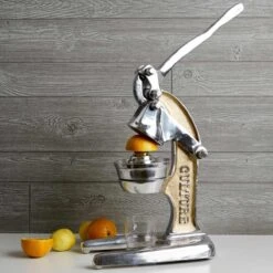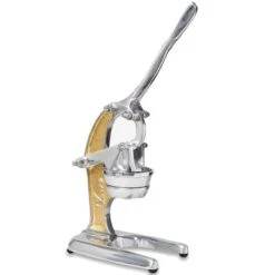 DotĂ© d’un bras de levier et d’un compresseur, il peut extraire le liquide tout en sĂ©parant la pulpe et les pĂ©pins.