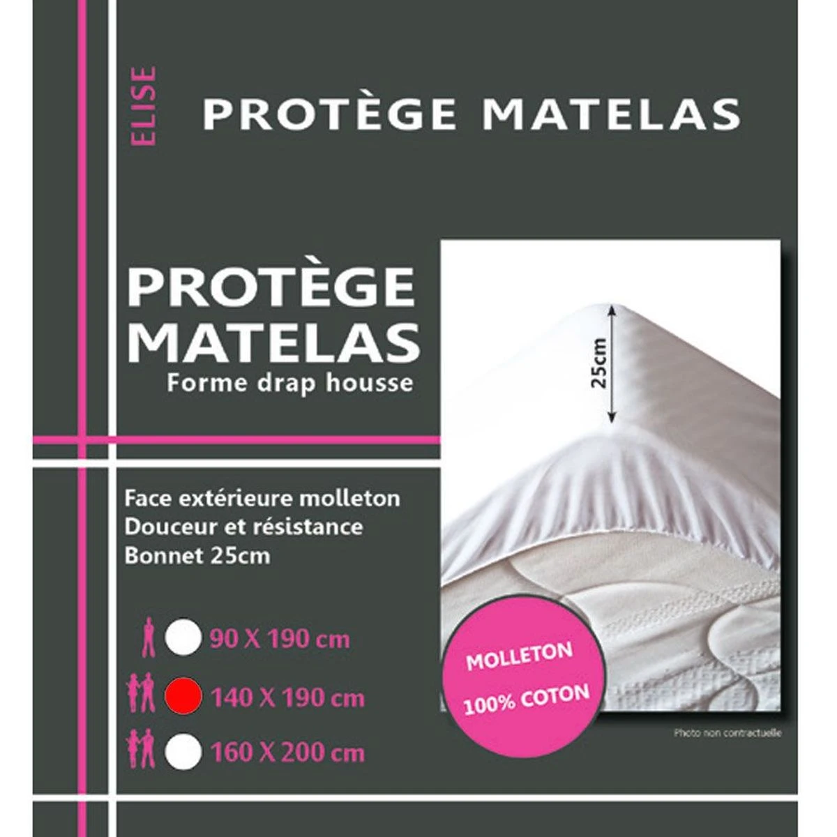 Dimensions : 140 x 190 cm – Bonnet 25 cm