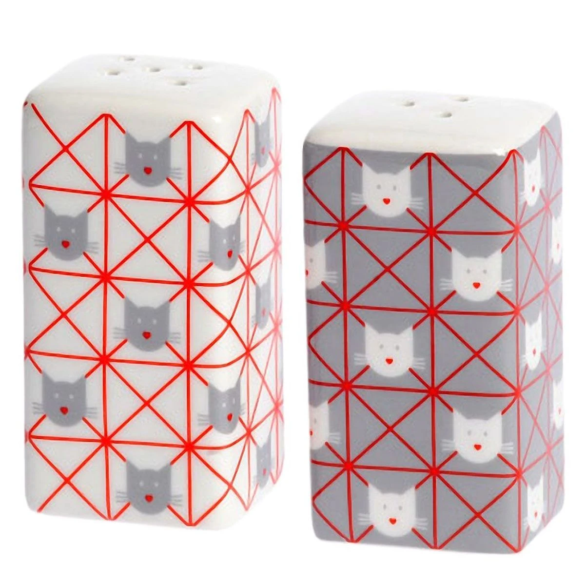 Salière Et Poivrière Chats En Porcelaine – Rouge Et Gris