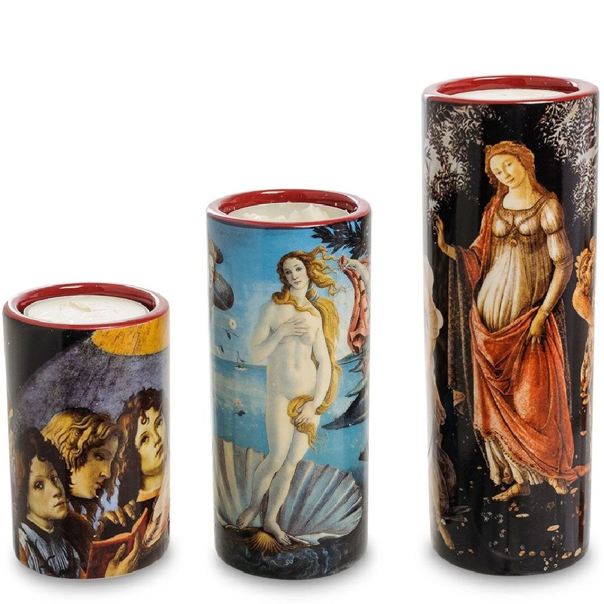 3 portes bougies reprĂ©sentants 3 oeuvres de Botticelli soit Primavere – Madonna – Venere.