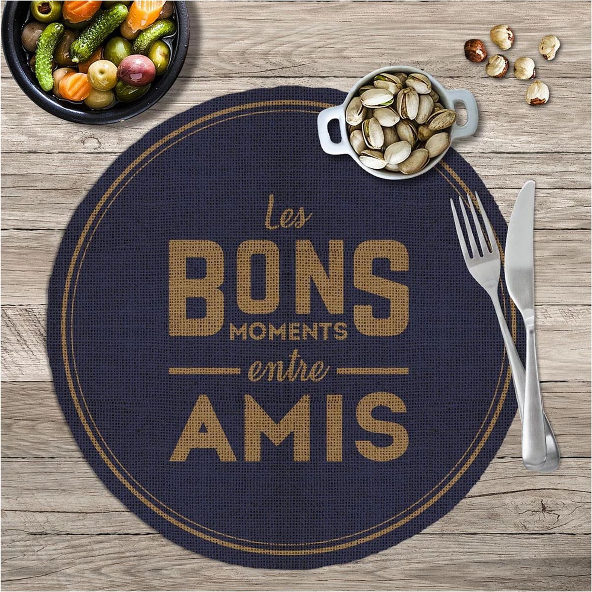 Set de table rond en PVC tissĂ© – Les bons moments entre amis