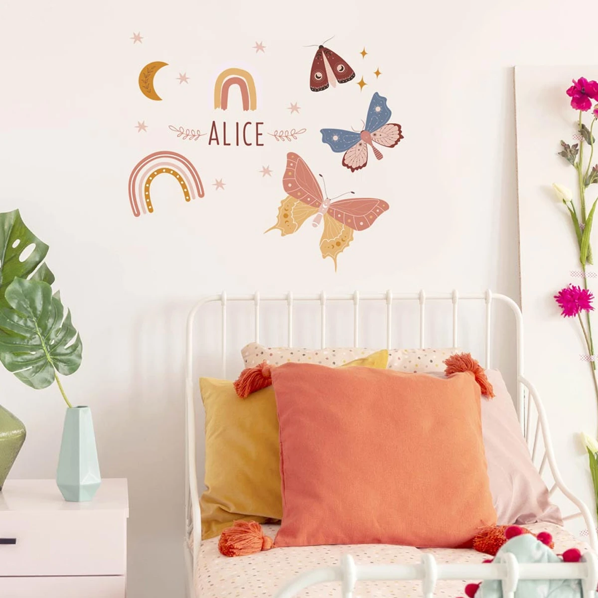 Sticker mural chambre d’enfant avec prĂ©nom – Papillons