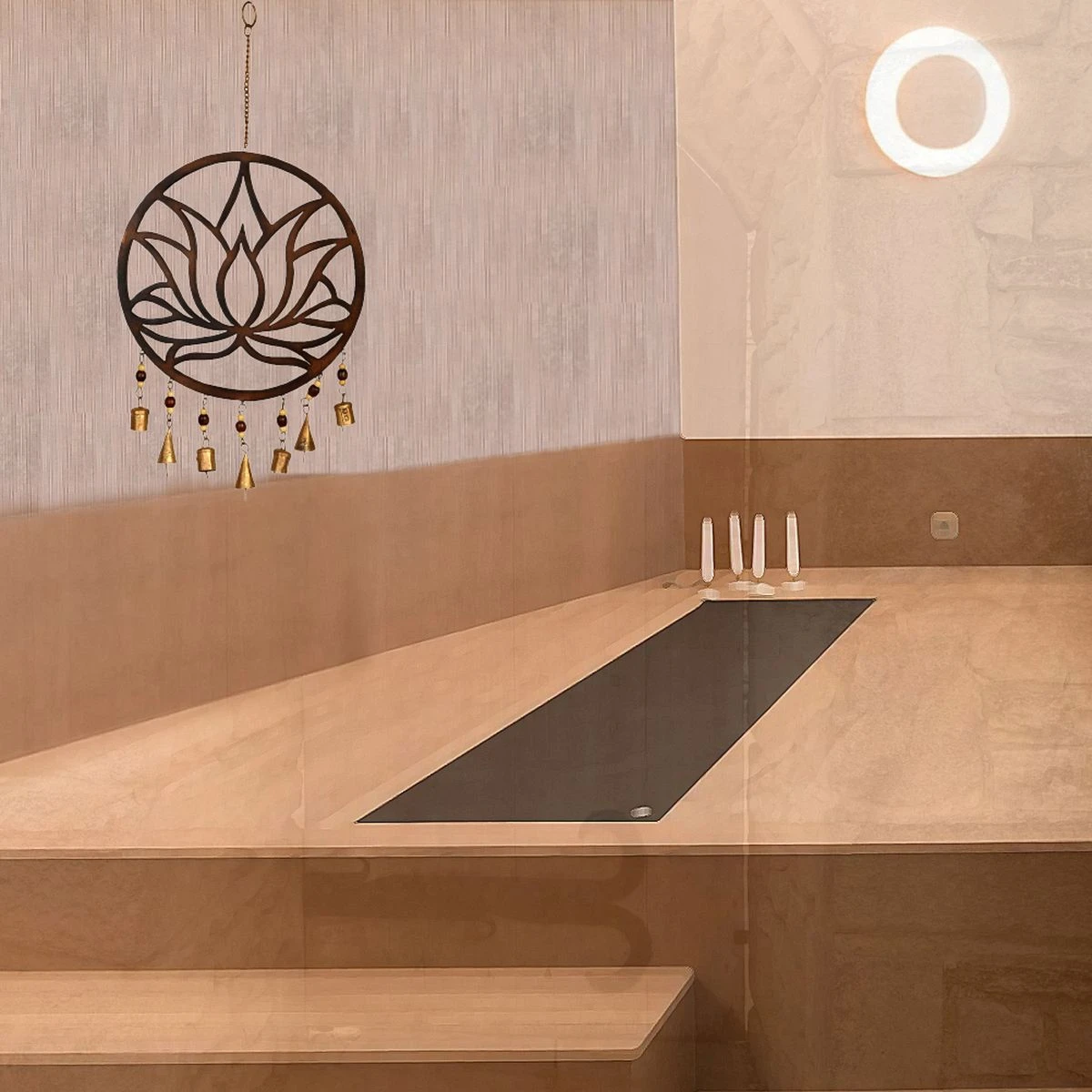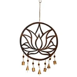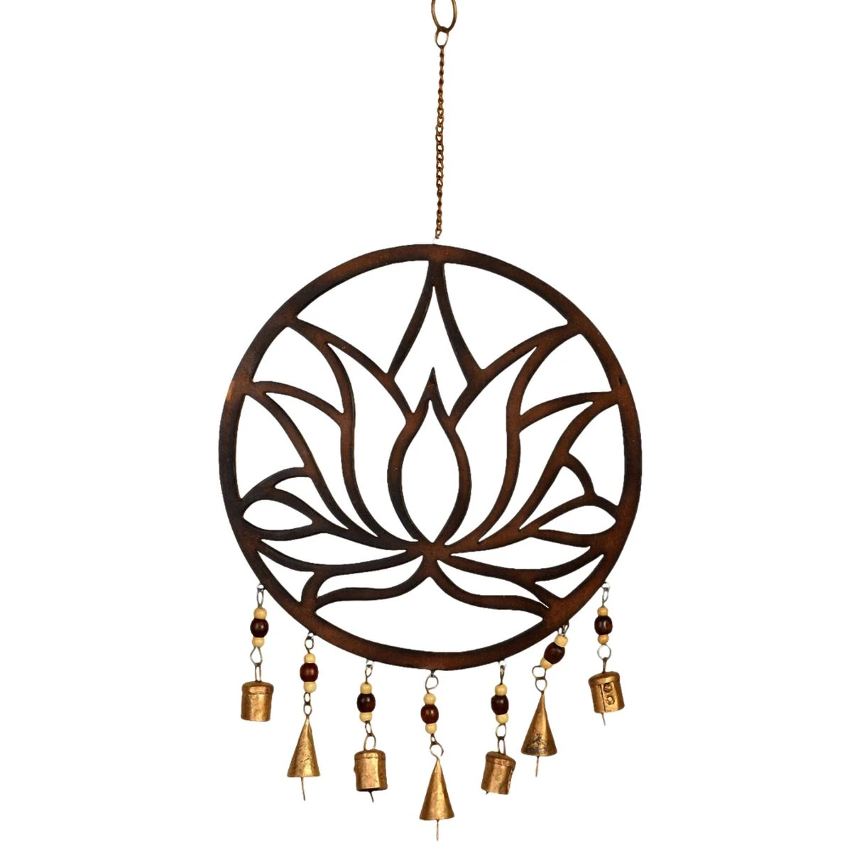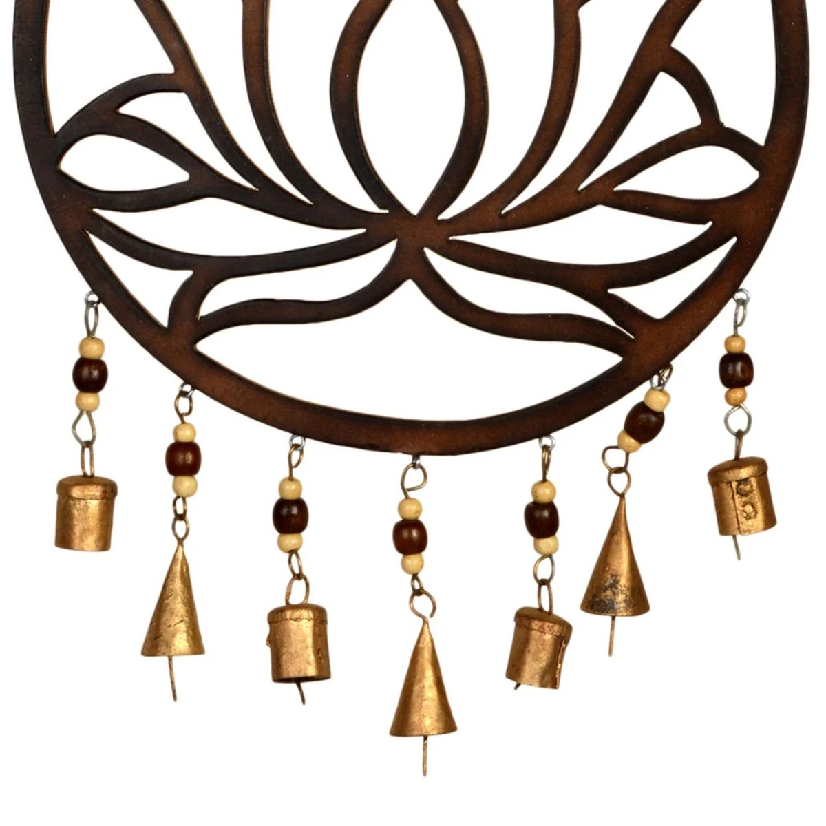 Suspension En Bois Fleur De Lotus Ă Clochettes – 46 X 25 Cm