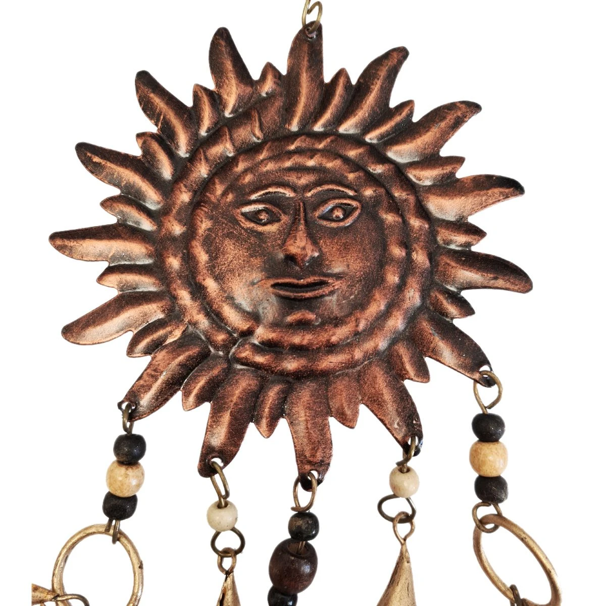 Suspension sonore Soleil et Clochettes et perles de bois 54 cm