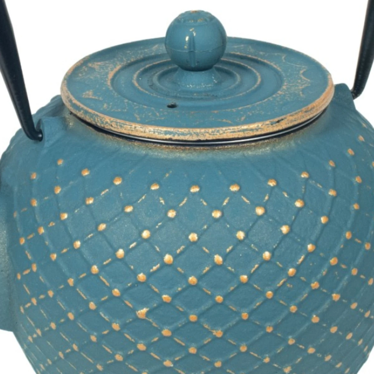 Théière Japonaise en fonte émaillée bleue et or 0.85 litre