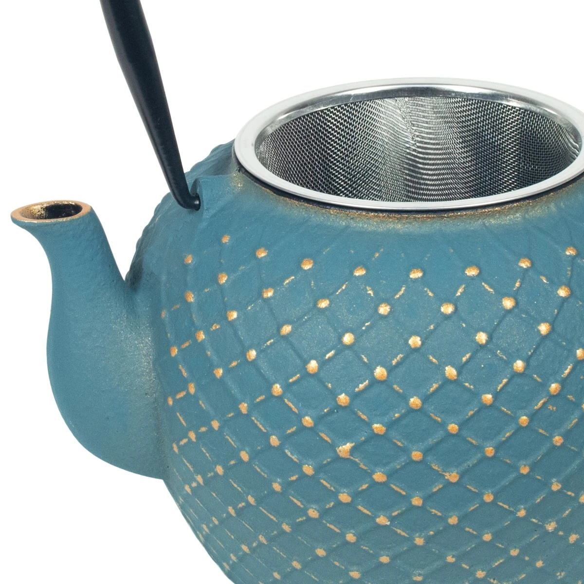 Théière Japonaise En Fonte émaillée Bleue Et Or 0.85 Litre
