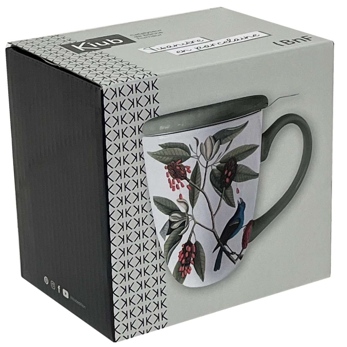 Matière : tasse et couvercle porcelaine, infuseur en acier inoxydable.